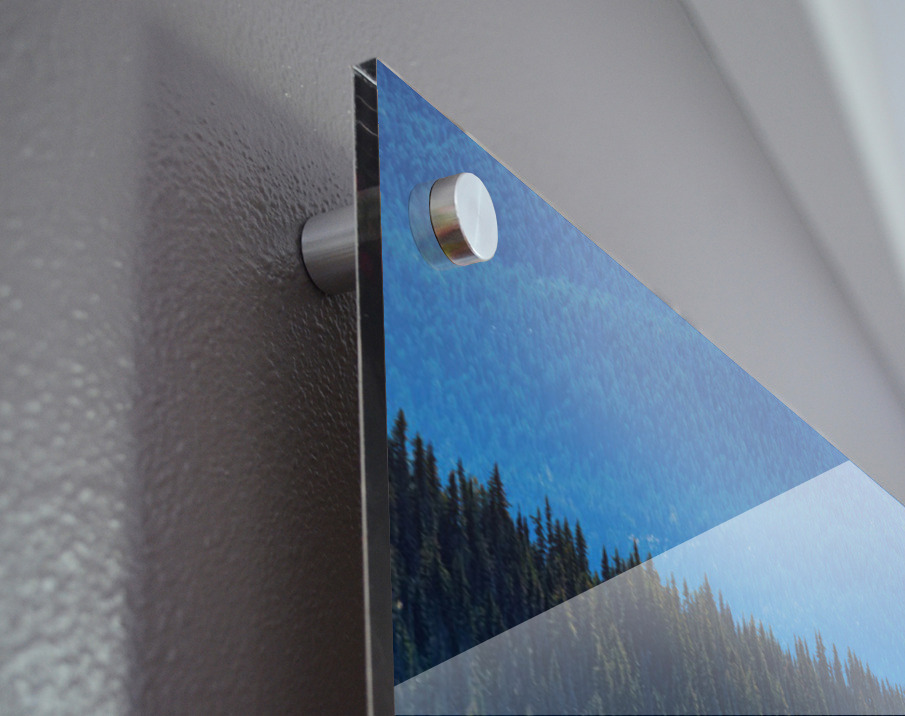 Impression sur acrylique avec entretoises ( cylindres métalliques )