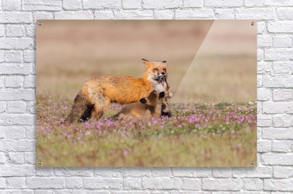 Get this artwork "Red Fox with Kits" in a framed print.